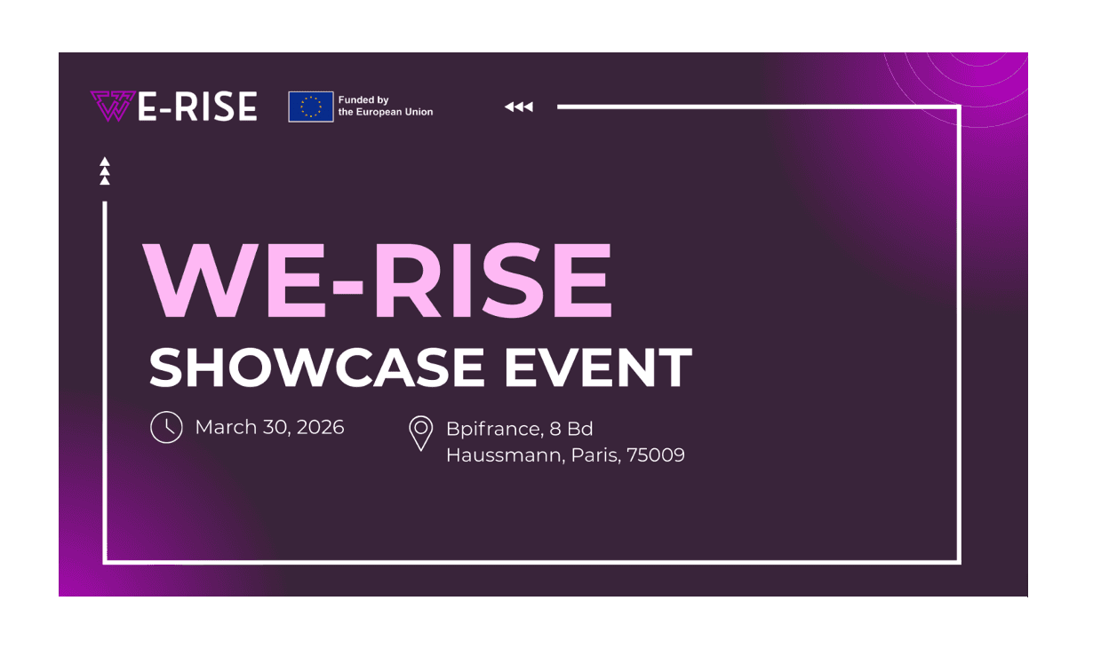 Join us on March 30th, 2026 in Paris for a special event showcasing the first cohort of the WE-RISE project—featuring 10 women-led startups driving innovation in GreenTech, AgriTech, and ClimateTech.